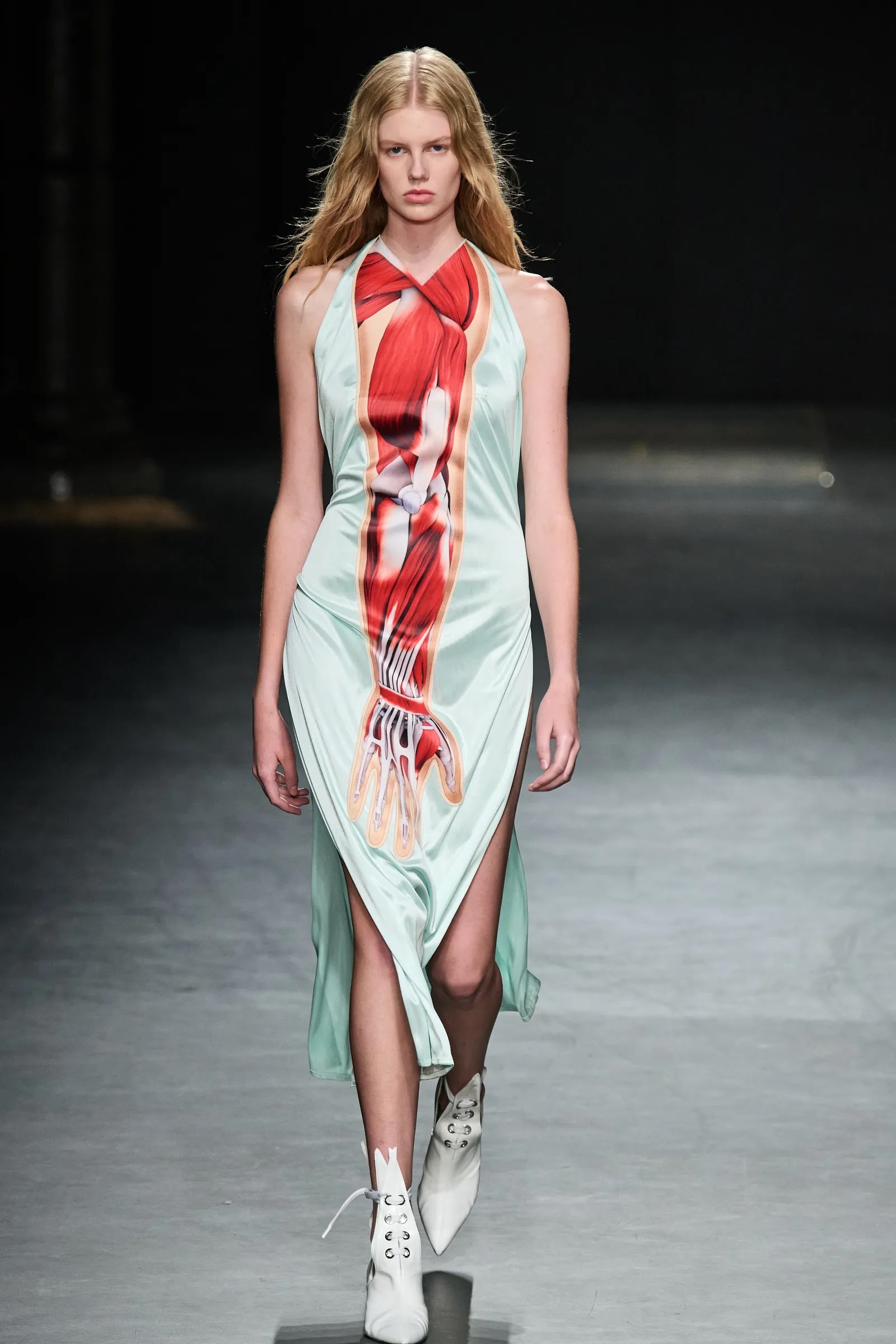 Christopher Kane's Spring 2023 collection returns with his homage and cleverly arranged stylizations for the female Eros, with a fifteen year perspective of his signature brand under his belt. Kane has revealed at London Fashion Week, forty two of his retrospection styles as a benchmark from Kane's debut in 2007, when he was just 25. Although his refinement and orchestration of seasonal showings over the last two decades have revealed a distinct learning curve of devising those most subtle sexual cues, while at the same time there does indeed seem to be a continued cultivation of Kane's postmodernist impressions.