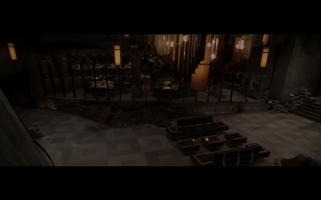 Moodboard: Screenshots from Terminator 3 "Rise of The Machines" (2003) of the Abandon U.S. Central Command centre, from the first cold war, known as 'Crystal Peak'. The interior sequence is somewhat breif, but the set design is very impressive. Showing analogue computer systems, a media area for the President to address the nation, ala 1980s at the height of a possible nuke exchange with Russia. In this fictional movie, it is the machines that initiate the first strike and wipe out the human race. *Note the 80s-esque mosaic of Reagan's satellite 'Star Wars' program.*