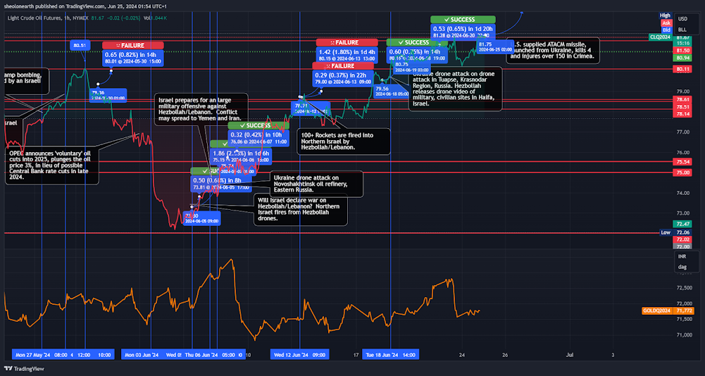 Oil is on track to pass its $83 price resistance (April 2024 highs). It's All about the geopolitical: Russia/Ukraine and Israel/Hezbollah