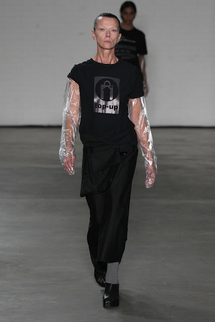 And with her Spring 2025 "PLASTIC" collection for London Fashion Week at the Oval Space in London, Zinko's curiosity with the morbidity of modern life, has shined through once gain. And according to attendees of her recent runway show, the invitations that were sent out portrayed an actual chest x-ray of a woman with breast implants, with a warning that Zinco's fictional Plastic Surgery clinic will not be liable for any discomfort caused, and that any legal action has resulted in bankruptcies of the unfortunate few, who have pursued claims for their botched up cosmetic surgery. Note the mock, post surgery bruised faces of the models. Zinko's anti-fashion humour, as noted earlier, very much aligns with Demna Gvasalia of Balenciaga fame, which can be hard to gauge at times whether his intention for shock value is in fact a neurotically laced, contrarian backlash. Attended for an audience of prudish invitees, which don't really exist.